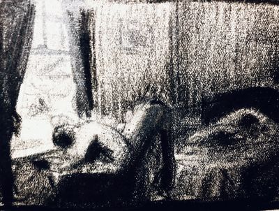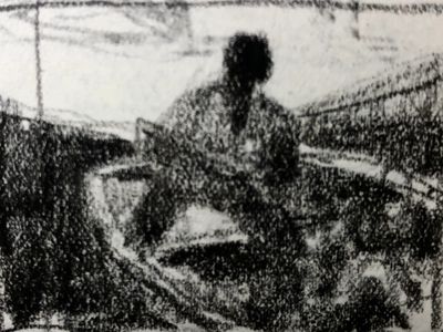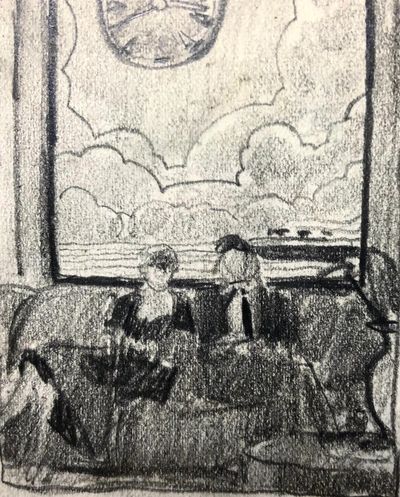 Some thumbnails are for paintings that still exist and some for paintings that were painted over or abandoned; some thumbnails are from works by other Dunn students (Cornwell, Von Schmidt) or artists Andres admired (Sorolla) and these are also included. Given that so much of Dunn's teaching centered around the pictorial concept, and the idea that it represents the key to unlock each painting as well as each student's potential, only Andres' thumbnails are included here. They have been taken from various sketchbooks from Andres' time with Dunn, where they are found alongside these class notes, both drawn or jotted down on that train in the wee hours of the morning.